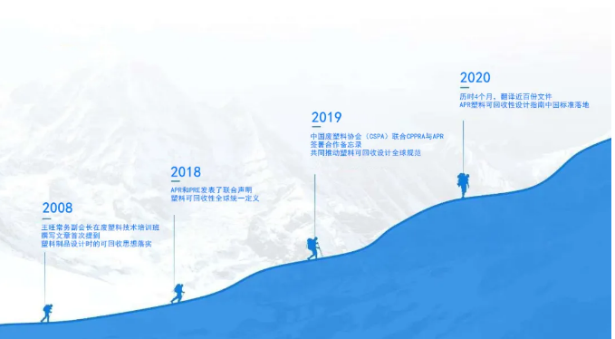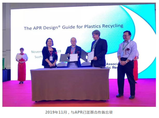 1年前,2019年11月,中国废塑料协会(CSPA)联合CPPRA与APR已签署合作备忘录,一起共同推动塑料可回收设计全球规范。