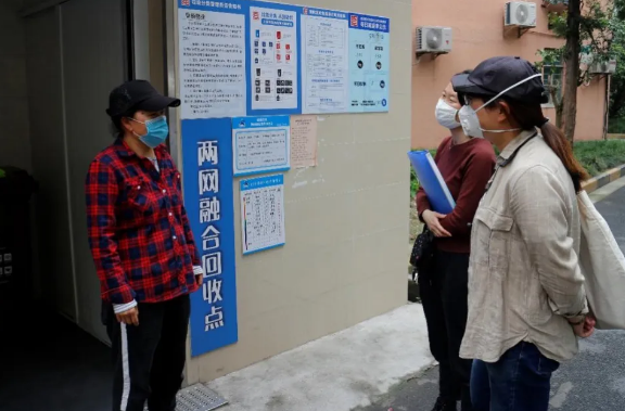 在曹杨新村街道一小区内,负责蓝鲸公司小区回收业务的负责人朱晓祺正在向居民们推广“可回收物全品类收运”措施,“其实牛奶包装、旧衣服都是可以集中回收处理的,大家丢进回收点或者交由小区保洁员,不仅爱护小区环境,还可以累计蓝鲸环保积分。”