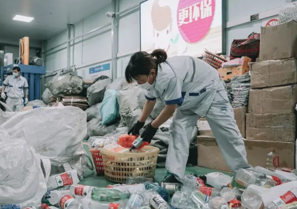 蓝鲸公司总经理袁霄珺对记者算了一笔账,“这块业务体量大,以衣服类和玻璃类为例,现阶段指导价格约0.25元/公斤和0.1元/公斤,综合人工、用车及中转站仓储费用,企业维护成本非常高。”袁霄珺介绍,虽然收运成本高,但是公司作为国有环保企业,履行社会责任,在生活垃圾回收品类上实现‘不挑食’,从纸张、书籍到泡沫、衣物;从统货塑料瓶到杂色玻璃制品,“难处理的,卖不起价格的,我们全部要,应收尽收,一个不少。”