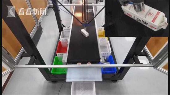 这就是超视觉垃圾分拣机器人正在工作的样子。只见传送带上送来牛奶盒、药盒等各种干垃圾,机器人的机械手臂可快速将它们拾起,并准确投放到所属的垃圾类别中。据介绍,这种机器人的有效分拣率达到95%,堪比人工,最高分拣速度为每小时5400次,而且可以一天24小时不间断工作。它眼疾手快,不怕环境脏乱差,也不会被玻璃等危险品伤害,而它的背后集成了近红外指纹材质识别,机器人快速轨迹跟踪等十多项关键技术,打破了垃圾智能分拣技术的国际垄断。