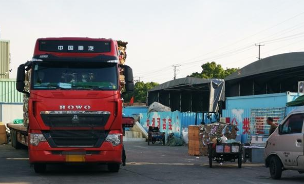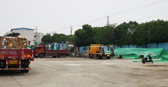 新民晚报记者来到江杨南路1339号,看似不起眼的巷子静谧无人,两侧停满了轿车,有的已经蒙上了厚厚的灰尘。这时,巷子迎面刚驶来一辆满载废旧家具木材的大型卡车,将路人的目光吸引至巷子口的瑞宝重车服务维修厂,厂区门口内还“堵”着一辆重型卡车,正在装载压缩打包过的废旧纸盒纸板。