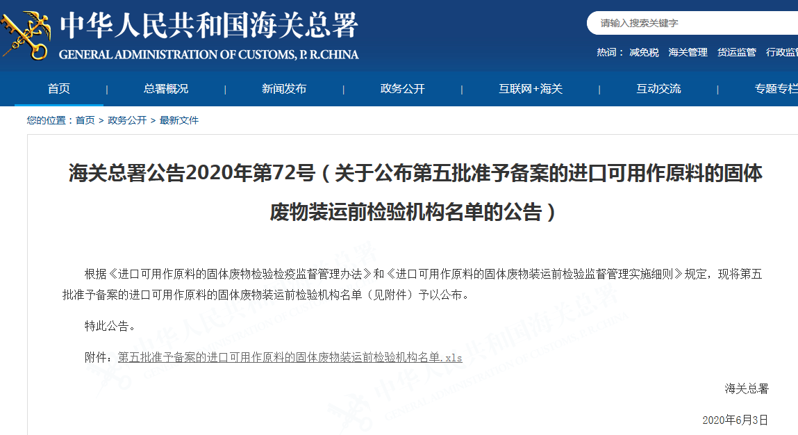 实施装运前检验 废物原料种类 |