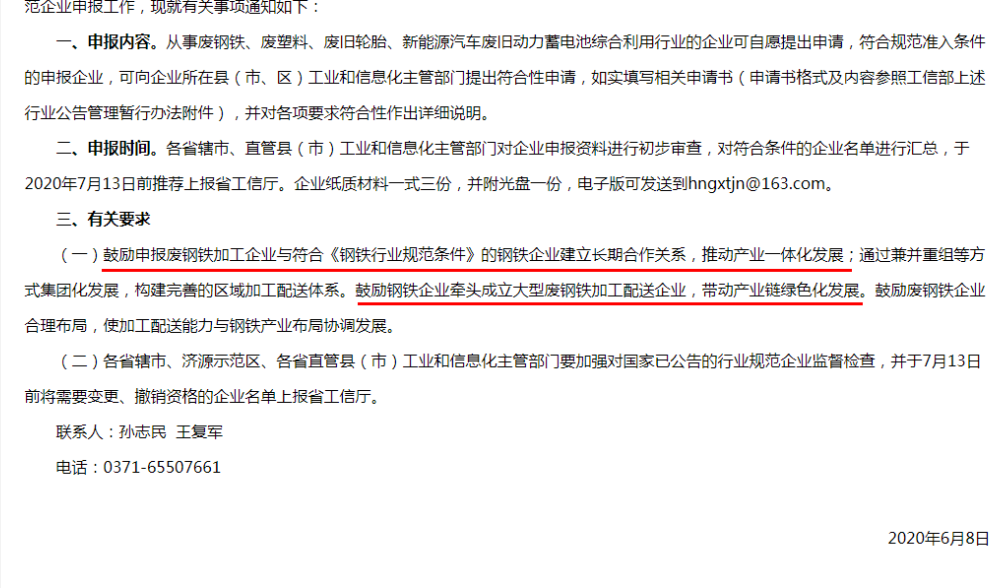 6月9日,河南省工信厅发布了《关于组织开展再生资源综合利用行业规范企业申报工作的通知》,加快引导废钢铁、废塑料、废旧轮胎、新能源汽车废旧动力蓄电池综合利用行业高质量发展,提高综合利用水平。