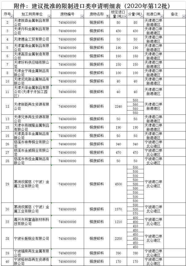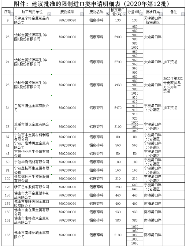 9月17日,2020年第12批建议批准的限制进口类申请明细表公布。