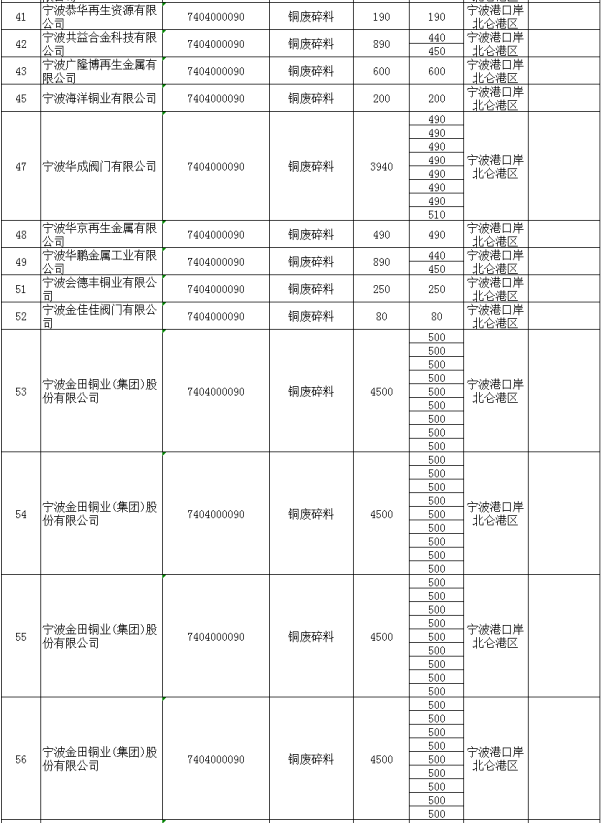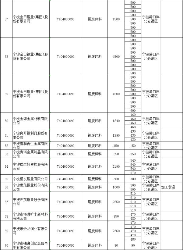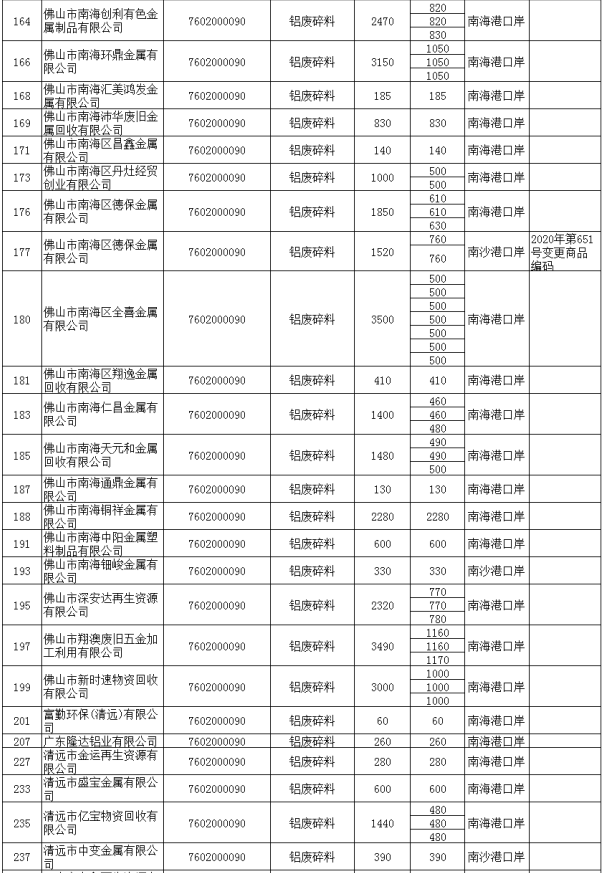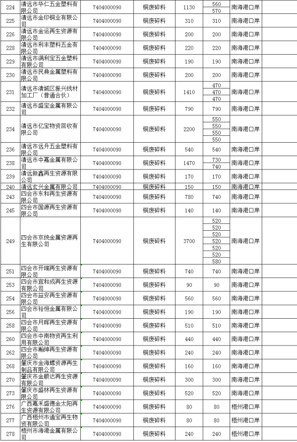 第一季度(第一批至第四批)铜废碎料批文总量305591吨,铝废碎料批文总量284549吨;
