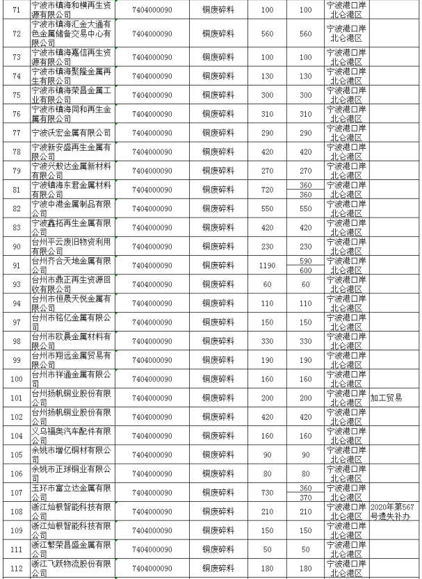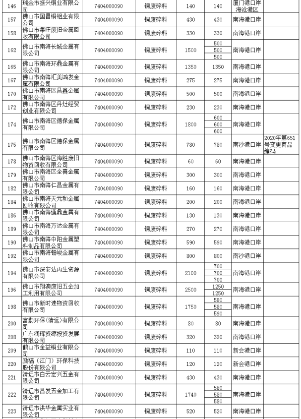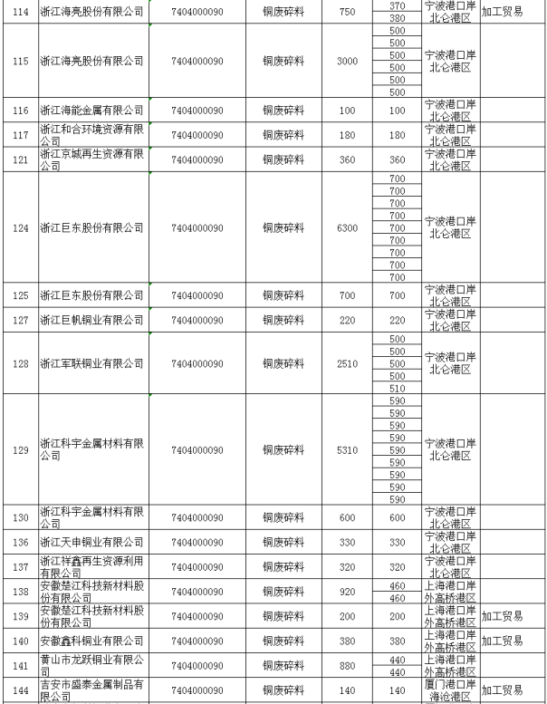 第二季度(第五批至第八批)铜废碎料批文总量236163吨,铝废碎料批文总量199450吨。
