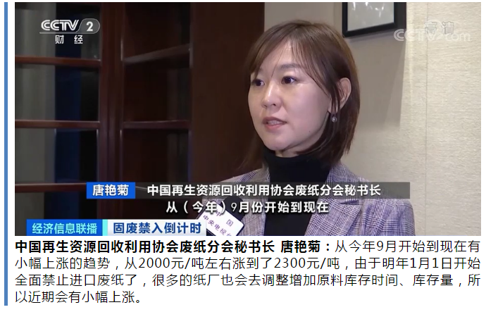 明年1月1日起,我国将禁止以任何方式进口固体废物。废纸作为进口固体废物的一个主要品类,由于在价格方面存在一定的优势,进口废纸一直被国内造纸行业所青睐。