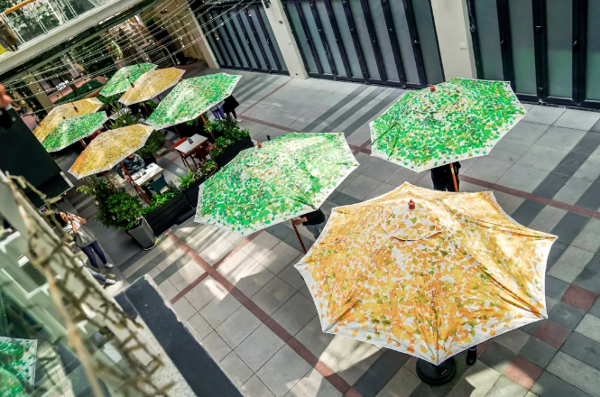 开展饮料瓶回收行动半年后,可口可乐中国再度回到上海五里桥街道,为当地社区带来可口可乐全新打造的户外遮阳伞。别具一格的遮阳伞由饮料瓶回收再生而成,是可口可乐中国社区环保美学探索道路上的坚实一步。记者在现场看到,遮阳伞的伞面由PET饮料瓶回收再生面料制作,伞高2.5米,直径有2.7米和2.1米两种规格,满足社区内不同使用场景的需求。遮阳伞由五里桥社区的时尚创建创办人蔡超恒等三位设计师联合设计,以循环新生为核心设计理念,在伞的内侧通过通俗易懂的手绘故事——“回收我,回头见”,生动描绘了饮料瓶从回收到成为遮阳伞回馈社区的循环再生路径;伞面则是以五里桥社区独特的银杏为设计元素,并选取了春意盎然的绿与秋韵烂漫的黄作为主色调,象征着时间周而复始,生生不息。