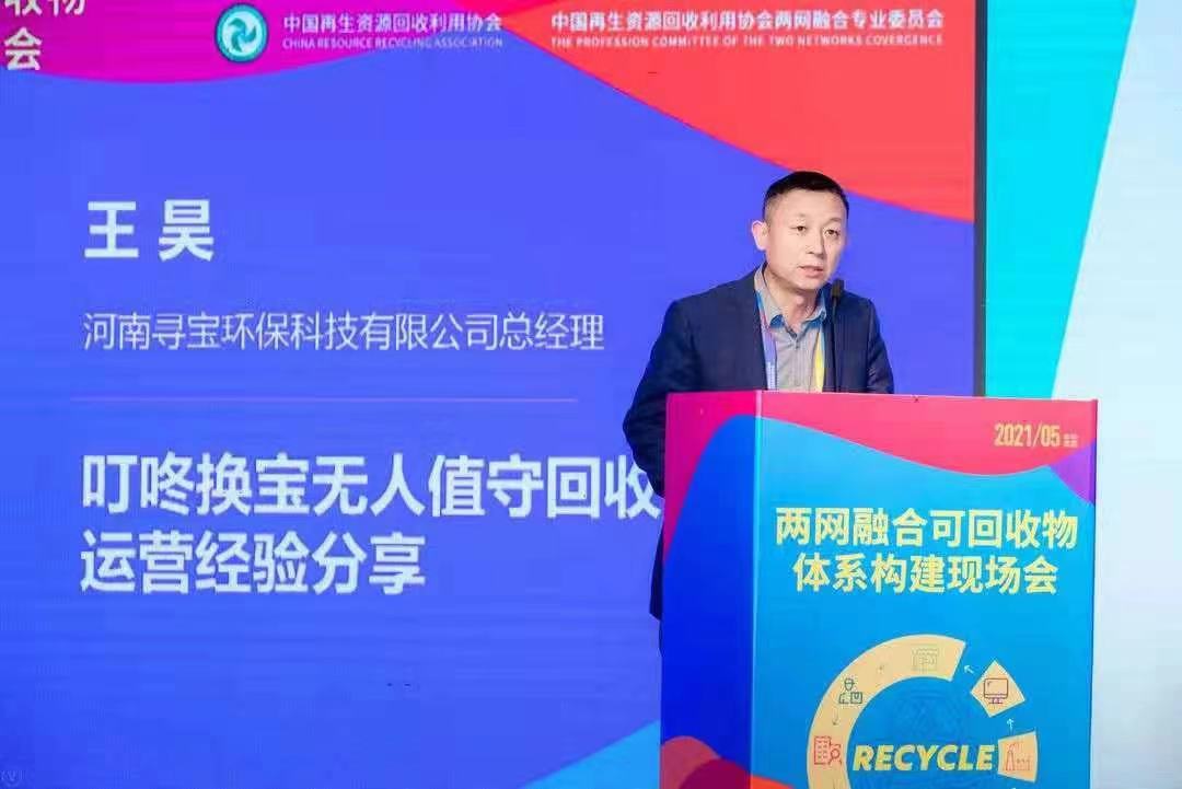 河南寻宝环保科技有限公司总经理王昊详细介绍了城市垃圾分类前端系统性解决方案-叮咚换宝无人值守回收模式运营经验,帮助运营者获得长期持续的收益,让回收成为时尚。