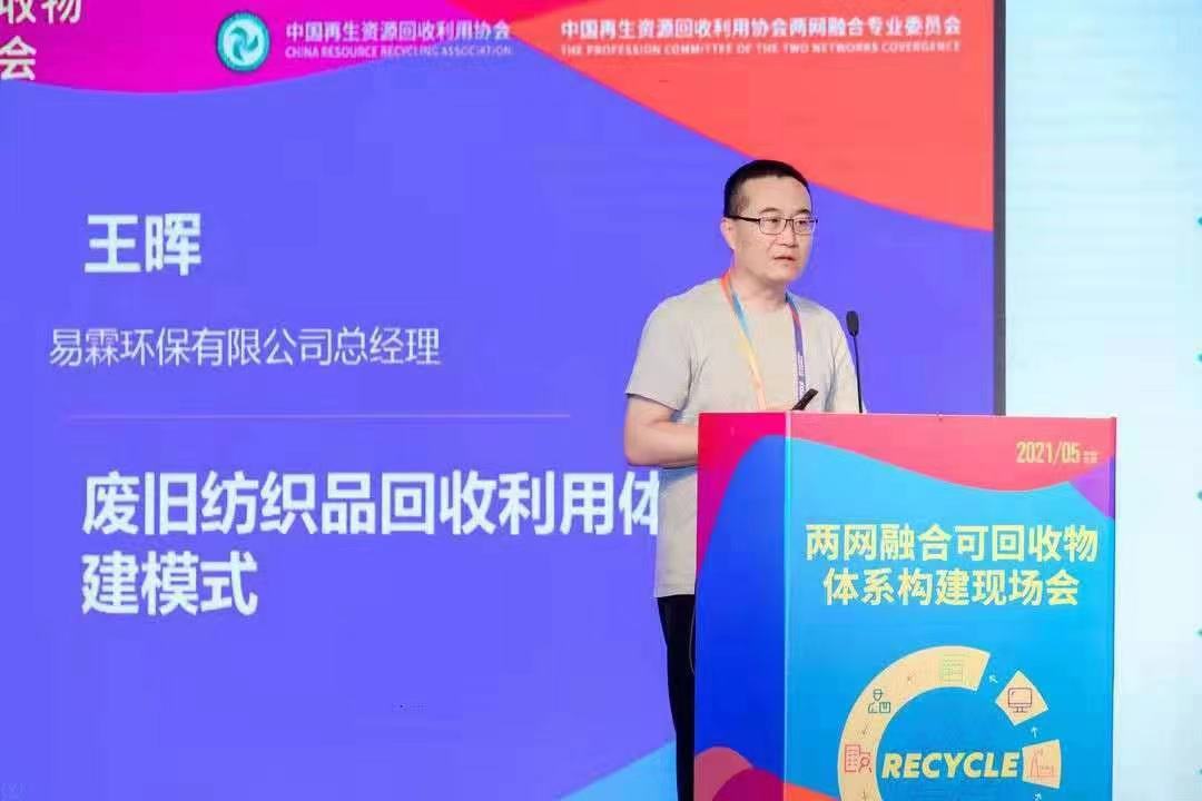 易霖环保有限公司总经理王晖在题为《废旧纺织品回收利用体系构建模式》分析中讲到,易霖环保针对废旧纺织品回收建立了一套完整的回收利用体系,同时充分利用原有的再生资源体系及其它产能优势,嵌入以废纺为特色的“易箩筐”综合回收利用模式,既关注政府工作重心又兼顾企业生存利益,为各地两网融合、产业升级提供解决思路和方案。