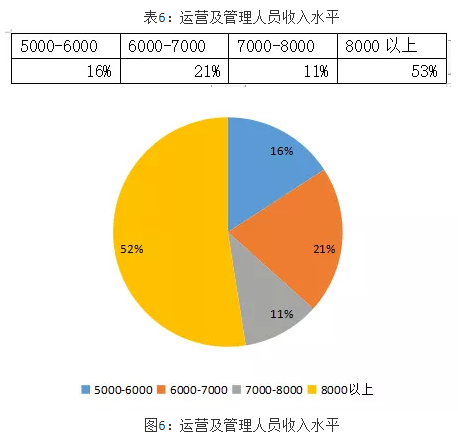 运营及管理人员的工资水平基本高于一线技工,约53%的企业运营及管理人员的工资水平超过了8000元。