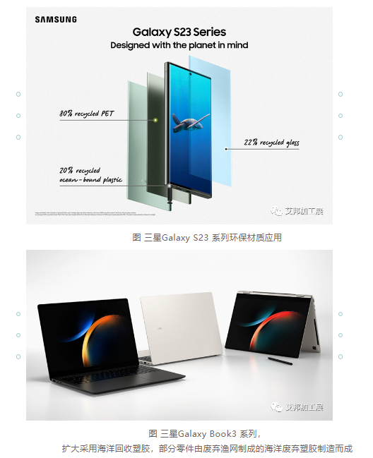 除PCR、海洋回收塑料外,三星还扩大可回收铝材、再生玻璃等材料的应用;