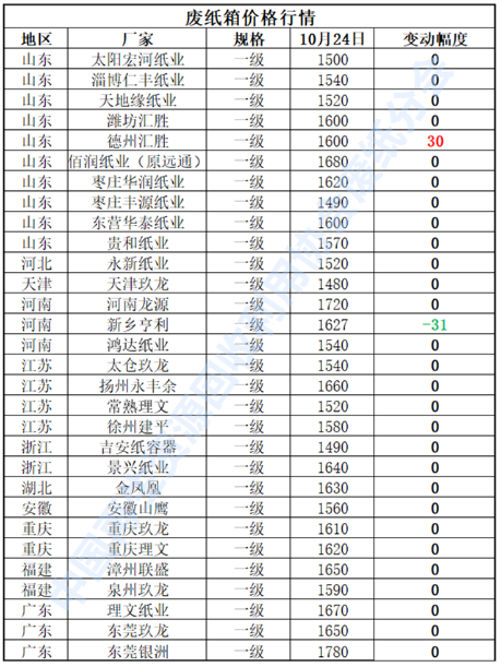 今日中国再生资源废纸价格指数为1616元/吨,与上一个工作日相比上调1元/吨。望当地废纸商家密切关注价格走势,谨慎操作!