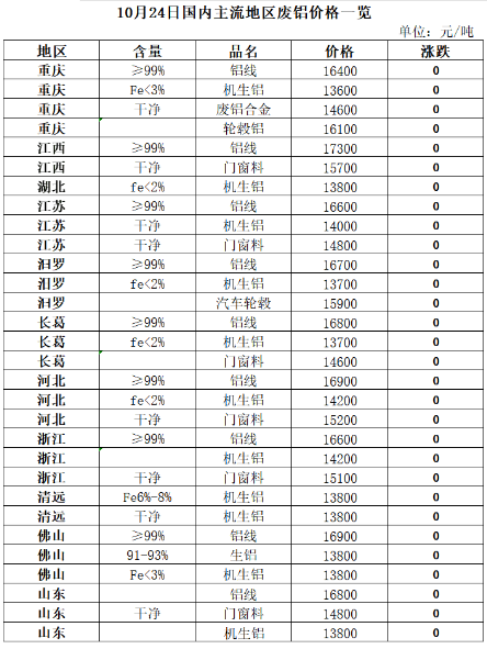 废铜:今日中国再生资源废铜价格指数61791元/吨,较昨日上涨100元/吨。10月24日,国内现货铜成交区间66410-66450元/吨,较上一交易日价涨400元/吨,持货商升贴水对11月b160-b200,升水均值较上一交易日涨90元/吨。上午北方临沂、保定和佛山货场废铜最高报价清光-合股采购价在62200-62300元/吨,午间盘中价格较上午上涨100元/吨,主要以现款寄存交易,电解铜升水走强。废铜抗跌,精废价差498元/吨价差,位于合理价差下方,不利于再生交易。上午国内铜价涨跌互现,午前国内铜价再度站稳66000元/吨,废铜现货供应紧张,成交价格水涨船高,华中市场光亮铜价格上涨至62100-62200元/吨。同时下游再生铜杆需求一般,市场青睐无氧,导致企业也谨慎买入原料生产,废铜库存维持低位。整体看再生成交供需两弱,预计短线价格区间震荡为主。