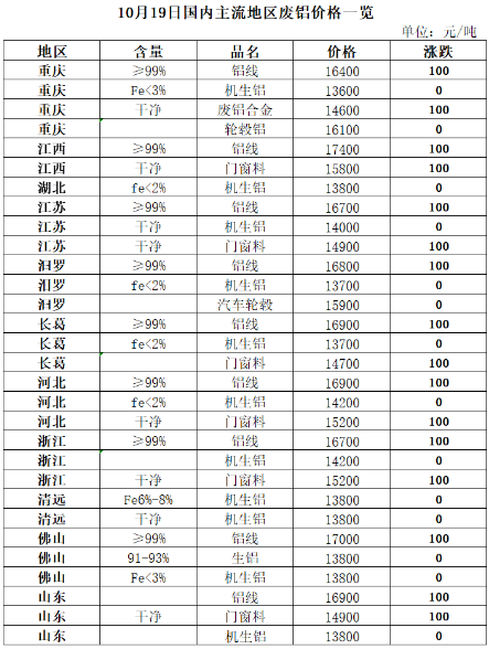 废铝:今日中国再生资源废铝价格指数13847元/吨,较昨日持平。隔夜伦铝开盘下行后盘中宽幅震荡,尾盘收涨,盘终涨12美元/吨至2189美元/吨。沪铝夜盘开盘下行后反弹,而后震荡走低,尾盘收涨,主力近月重合涨70元/吨至18955元/吨。昨日废铝市场主流稳中涨100元/吨,市场成交情况偏弱,主要是贸易商库存低位,低位出货意愿偏弱,观望为主。预计今日铝价偏强运行,废铝价格盘整。