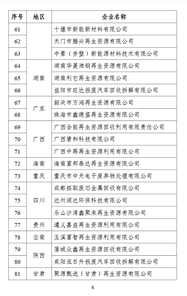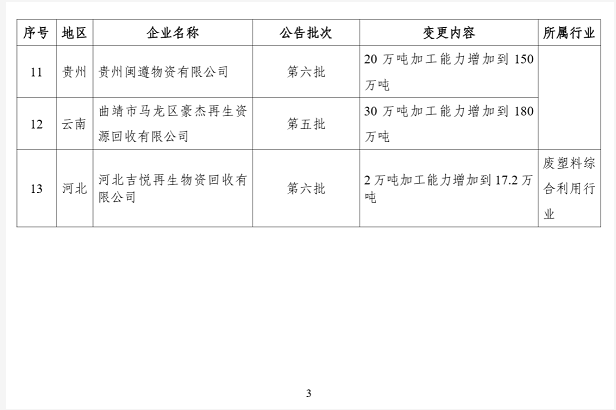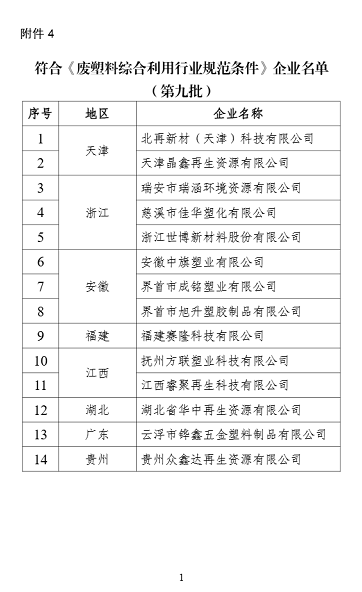 4. 符合《废塑料综合利用行业规范条件》企业名单(第九批)