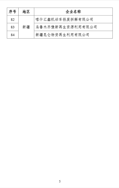 5. 符合《废旧轮胎综合利用行业规范条件》企业名单(第六批)