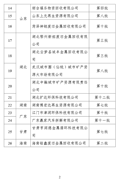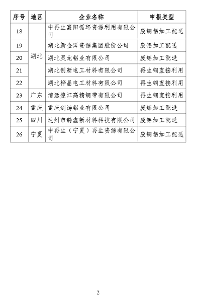 2. 符合《废铜铝加工利用行业规范条件》企业名单(第二批)