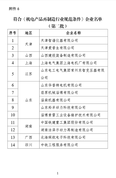 6. 符合《机电产品再制造行业规范条件》企业名单(第二批)