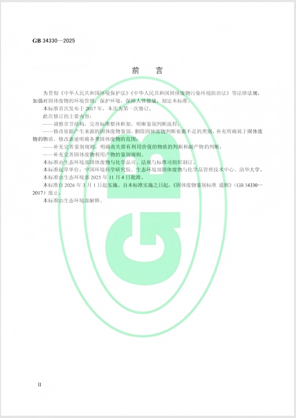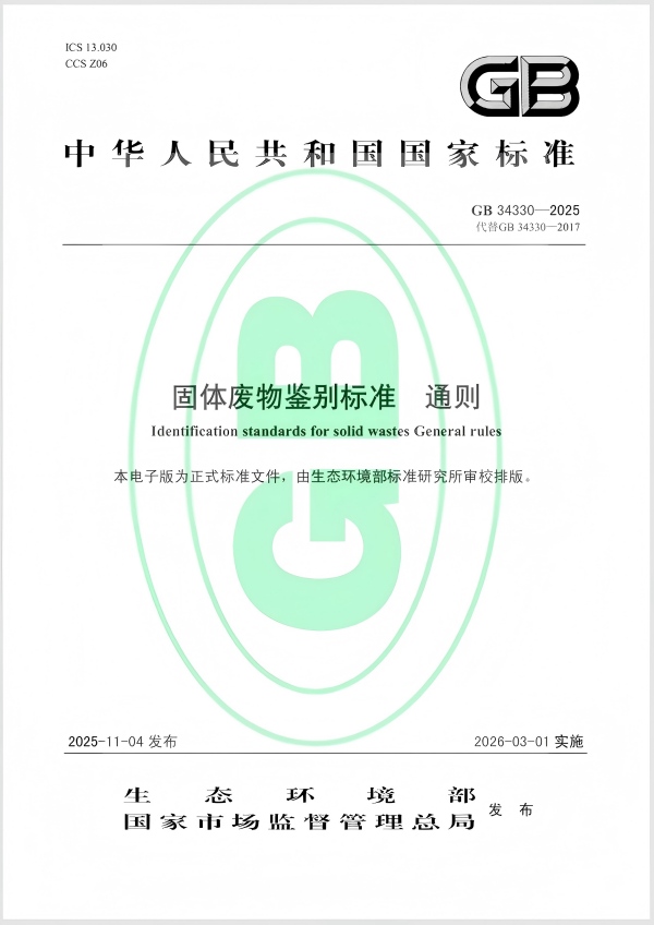 本标准自2026年3月1日起实施。自本标准实施之日起,《固体废物鉴别标准 通则》(GB 34330-2017)废止。