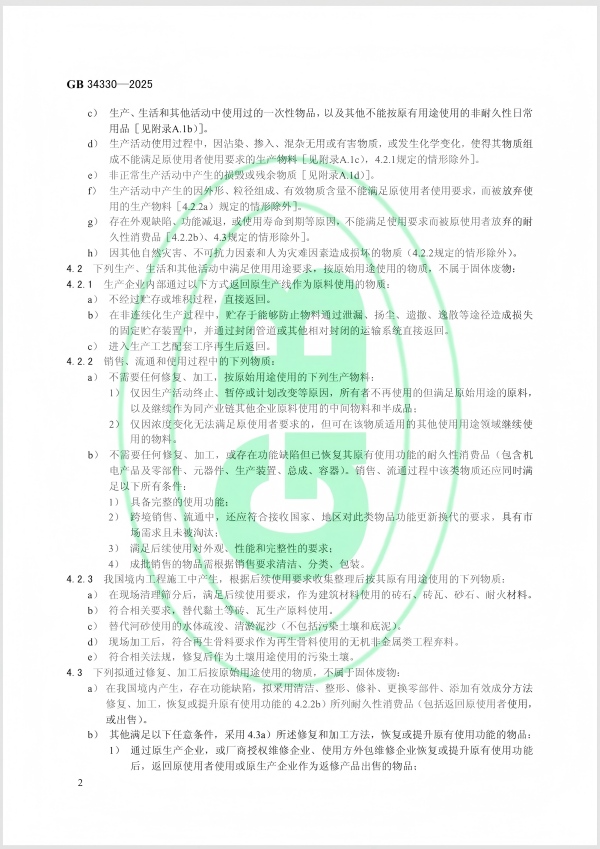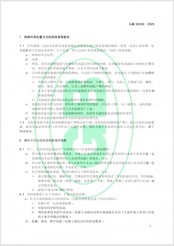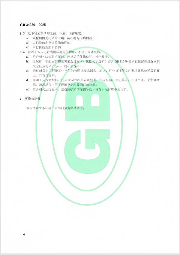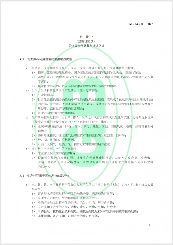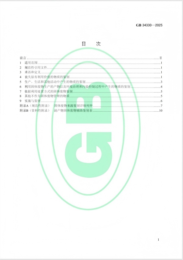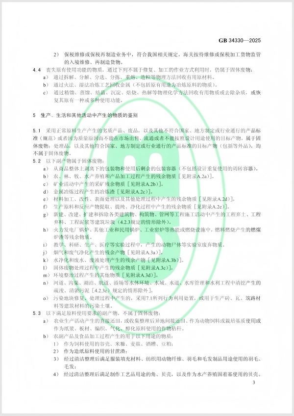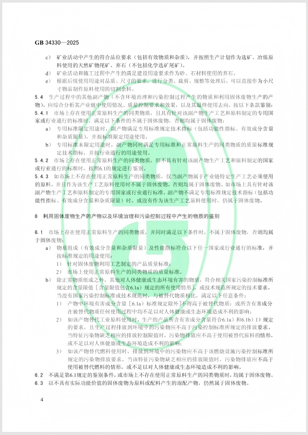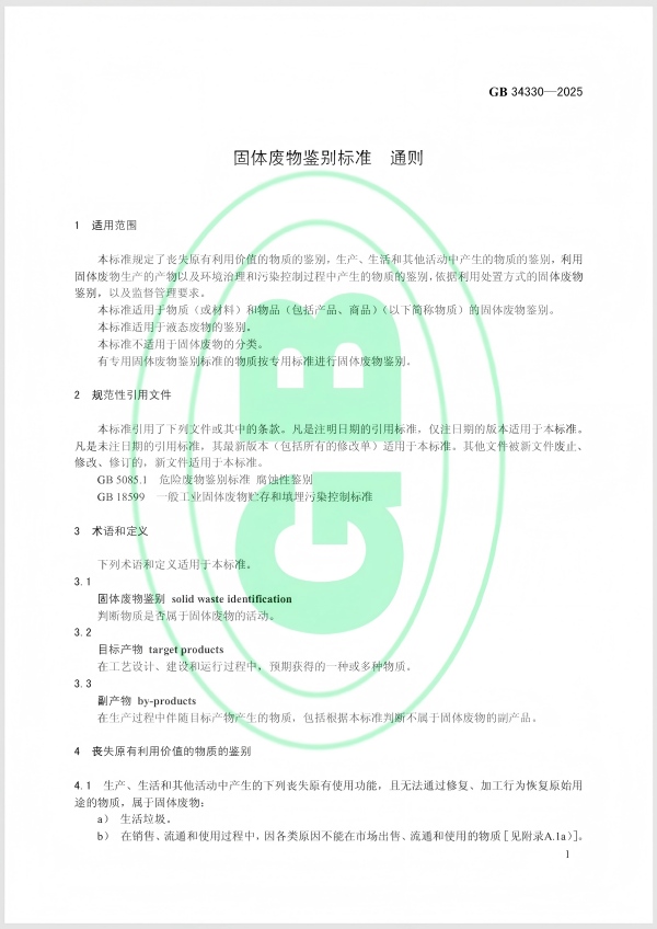 《固体废物鉴别标准 通则》(GB 34330-2025)。