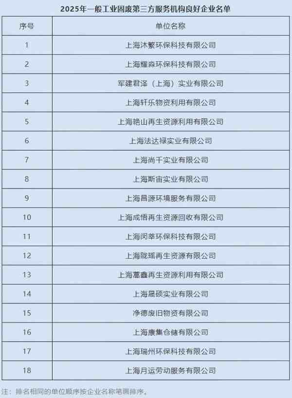 四年来通过这些举措的有效实施,闵行区已推动28家符合规范要求的一般工业固废收运单位投入运营,主要分布于莘庄工业区、颛桥镇、浦江镇等重点区域,企业名单如下: